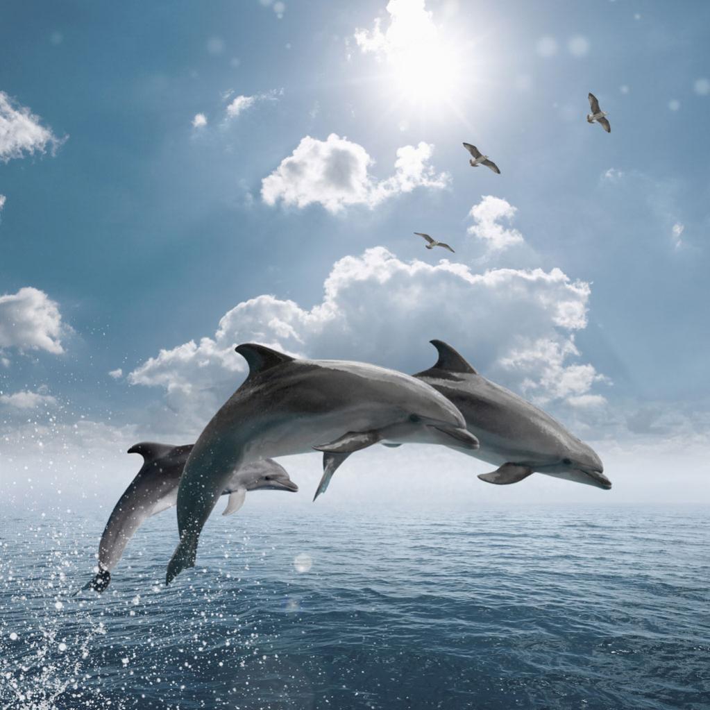 Dauphin Bleu Et Blanc Saute Hors De Leau Fototapete Fototapeten Mittelmeer Leben Springen Myloview De